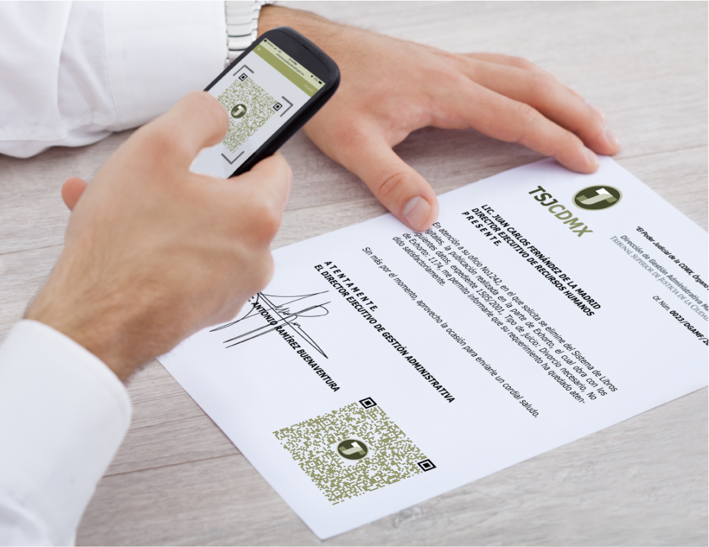 Sólo tienes que escanear el sello con tu teléfono celular y este te direccionará al MIDE – Módulo de Identificación de Documentos.