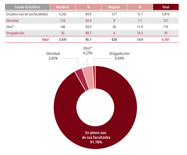 *Casos en los que las personas procesadas se encontraban en estado tanto de ebriedad como de drogadicción.