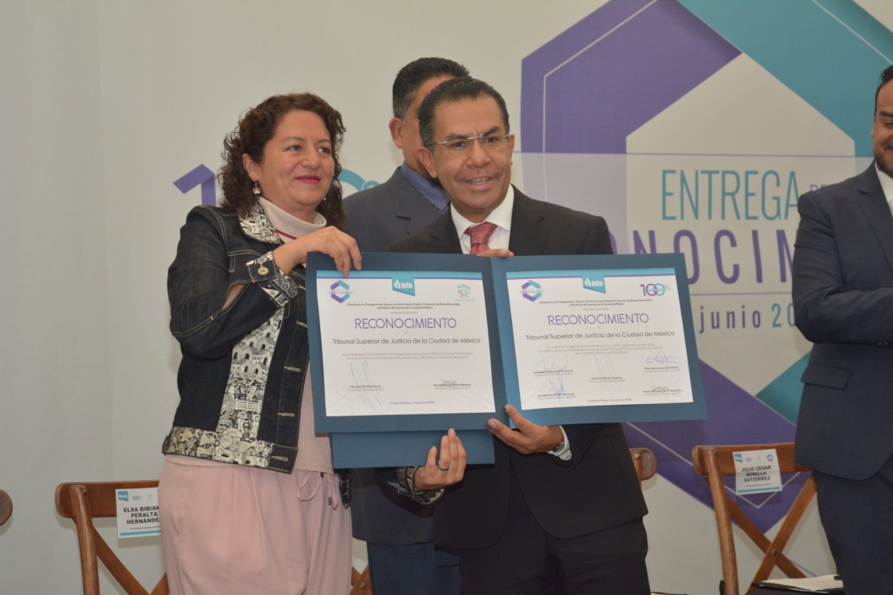 El instituto de Transparencia, Acceso a la Información Pública, Protección de Datos Personales y Rendición de Cuentas de la Ciudad de México (Info) entregó al Tribunal Superior de Justicia y al Consejo de la Judicatura, ambos de la Ciudad de México, la Constancia de Vigencia del Reconocimiento “100% Capacitado”, y el Reconocimiento al Desempeño Sobresaliente “ReDes”. Con representación del presidente del TSJ y del CJ, Rafael Guerra Álvarez, el consejero Jorge Martínez Arreguín, recibió los galardones.