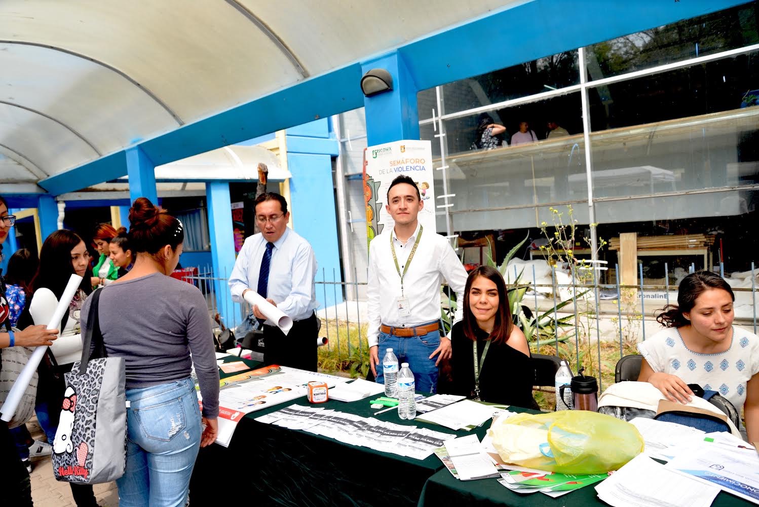 La actividad, realizada en la Escuela Normal Superior de México, permitió que los representantes de la casa de justicia local explicaran a los visitantes los servicios que se ofrecen y cómo pueden incidir en la pacificación social. En el stand compartieron información como el “Violentómetro” y datos sobre el proceso de mediación.