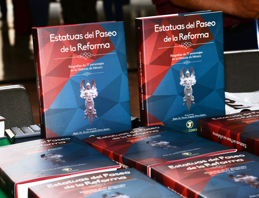 El presidente del Tribunal Superior de Justicia de la Ciudad de México (TSJCDMX), magistrado Álvaro Augusto Pérez Juárez, encabezó la presentación del libro Estatuas del Paseo de la Reforma. Biografía de 77 personajes en la historia de México, editado por el órgano judicial capitalino, en la que enfatizó que “estamos llamados a continuar y a honrar la identidad nacional” que forjaron esas figuras. En el auditorio Benito Juárez, destacó que para el TSJCDMX es motivo de orgullo publicar una obra que acrisola la esencia nacional en el más importante y hermoso paseo de “nuestra historia”. En el acto, los presentadores plantearon la necesidad de proteger ese patrimonio cultural, ante los embates del grafiti, el robo de las esculturas y sus placas correspondientes, así como de su entorno en el que las mega construcciones erigidas en últimas fechas hacen aparecerlas apenas como figuras de maqueta. En la presentación estuvieron el sociólogo Carlos Martínez Assad; la integrante del Instituto de Investigaciones Dr. José María Luis Mora, Verónica Zárate Toscano; el magistrado Juan Luis González A. Carrancá; el consejero de la Judicatura local Miguel Arroyo Ramírez, y el periodista José Lira Reyes.