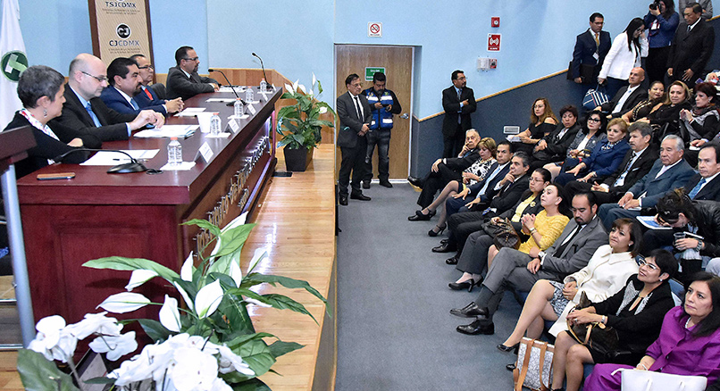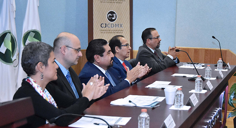 - Dr. Álvaro Augusto Pérez Juárez, Magistrado Presidente del Tribunal Superior de Justicia y del Consejo de la Judicatura, ambos de la Ciudad de México, Dra. Karla Irasema Quintana Osuna; Directora General de la Asesoría Jurídica Federal de la Comisión Ejecutiva de Atención a Víctimas, Dr. Héctor Olasolo Alonso, Catedrático de Derecho Internacional de la Facultad de Jurisprudencia de la Universidad del Rosario, Colombia, Dr. Ronald Gamarra Herrera, Fiscal Peruano para el caso del Enjuiciamiento del Ex Presidente Alberto Fujimori, Lic. Juan Carlos Gutiérrez Contreras, Director General de I(Dh)eas, Litigio Estratégico en Derechos Humanos, A.C.